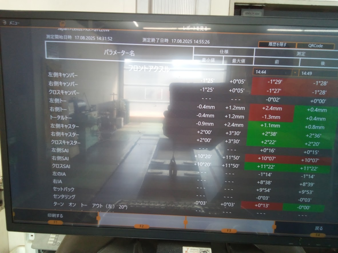 タイヤ交換と、心配なのでアライメントの測定を