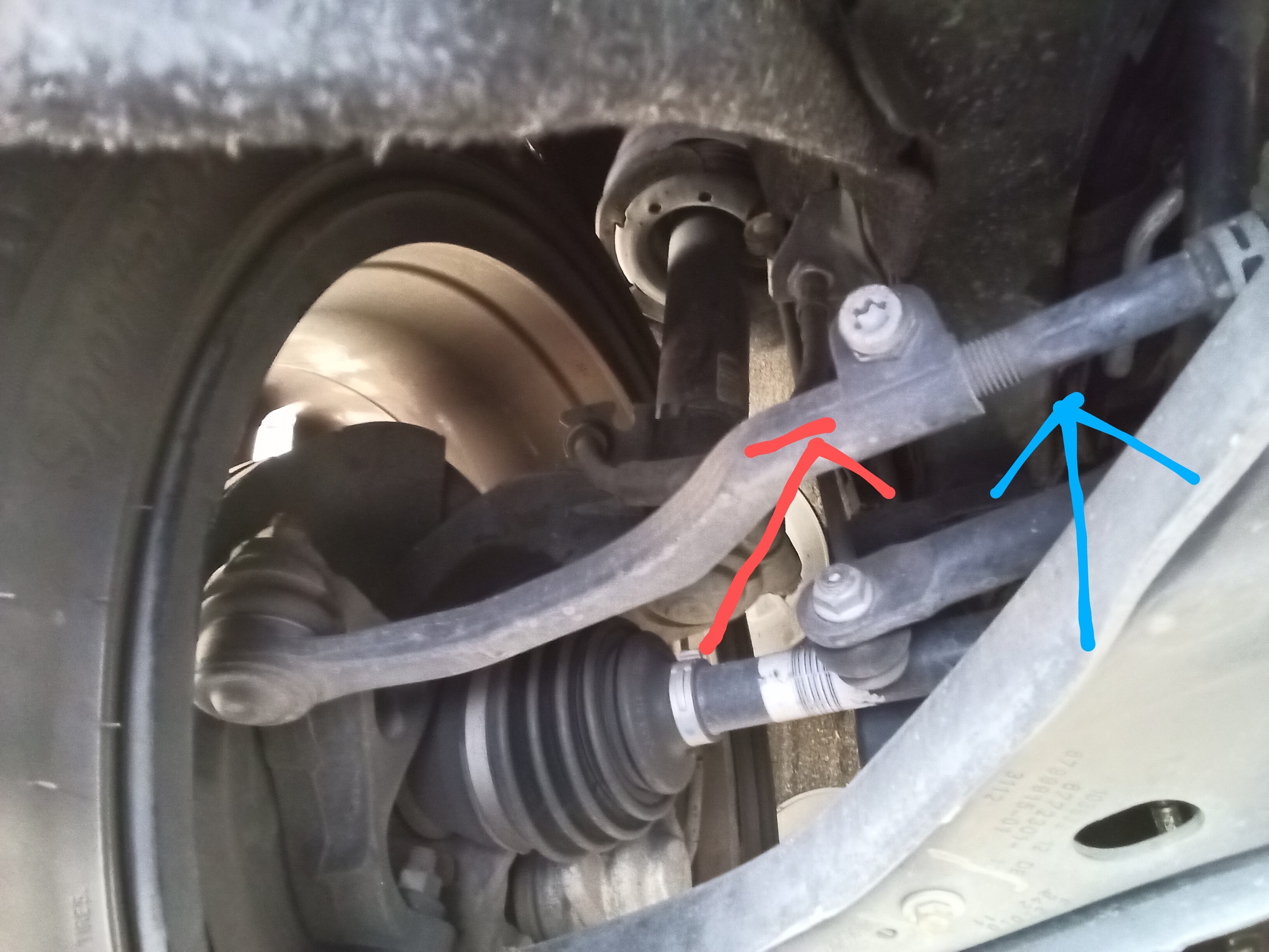 少し見づらいかもしれませんが赤→のナットを緩めてタイヤ自体を動かして調整する形になります!