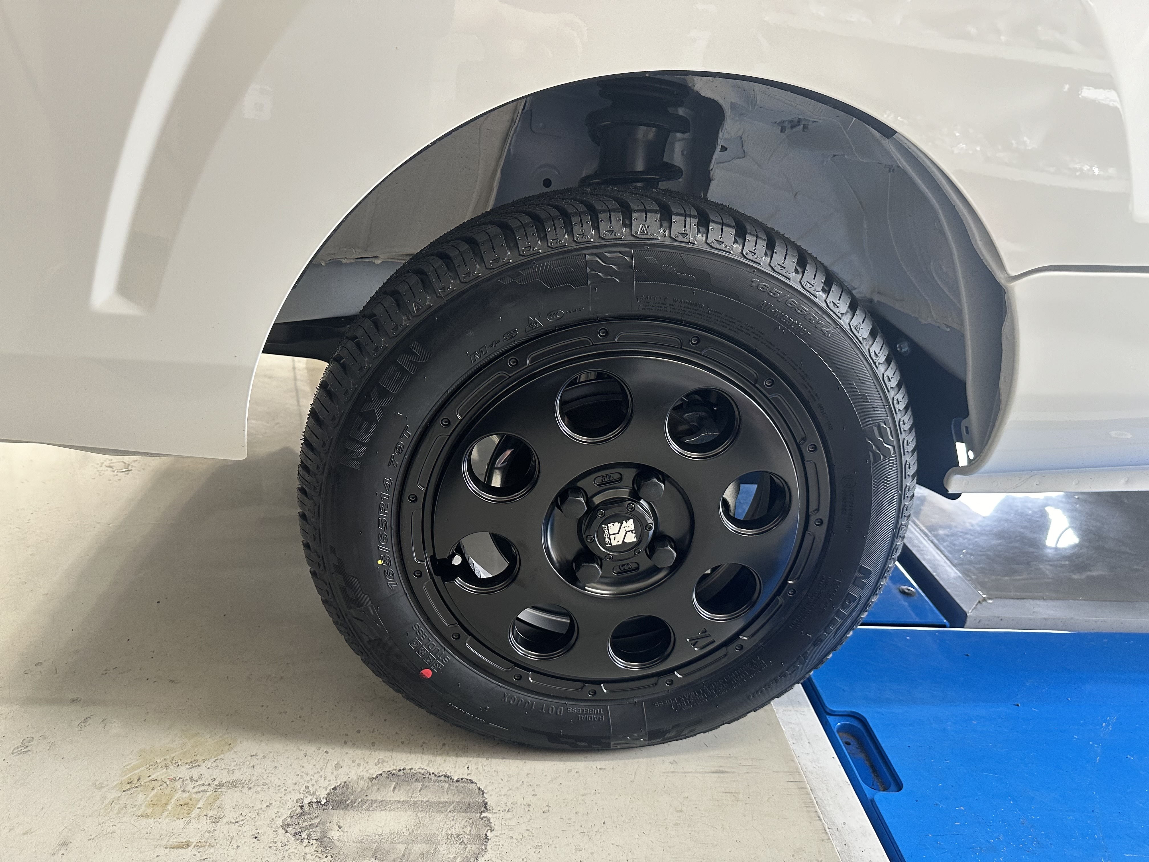 12インチから14インチへのインチアップとブラックのホイールでお車の印象がだいぶ変わりました!