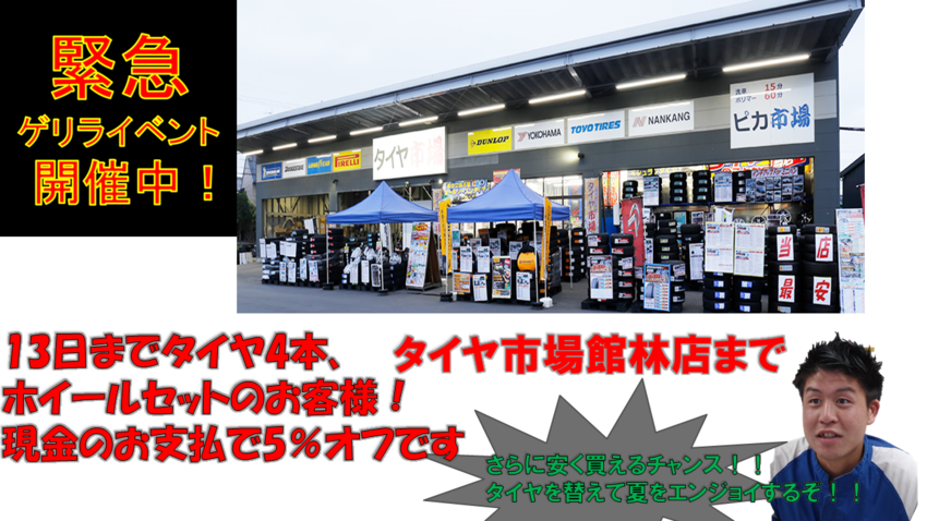 13日まで になります。タイヤ交換をお考えの方、日にちそんなに長くありませんが当店へお越しください。