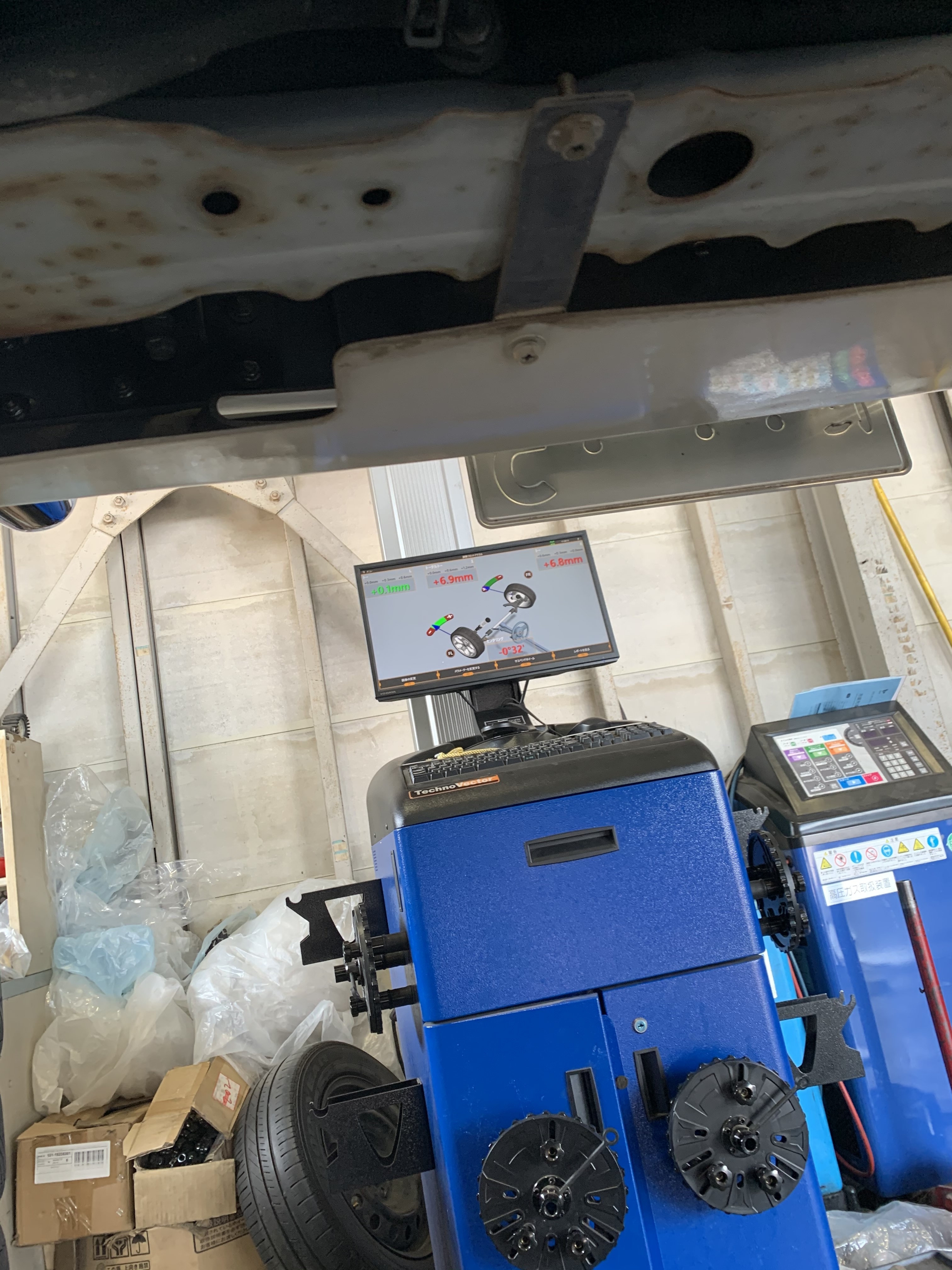 今回はアライメント調整でリフトアップしたお車の