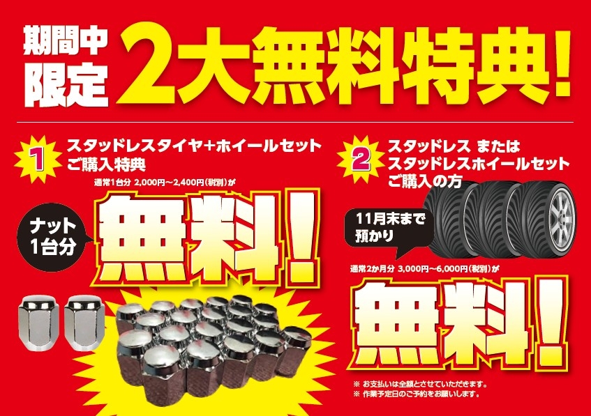 11月3日までにスタッドレスタイヤを買うと...
