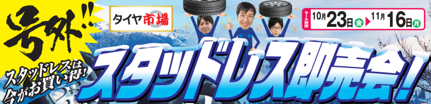 只今、タイヤ市場館林店ではスタッドレス即売大セールを開催中!!