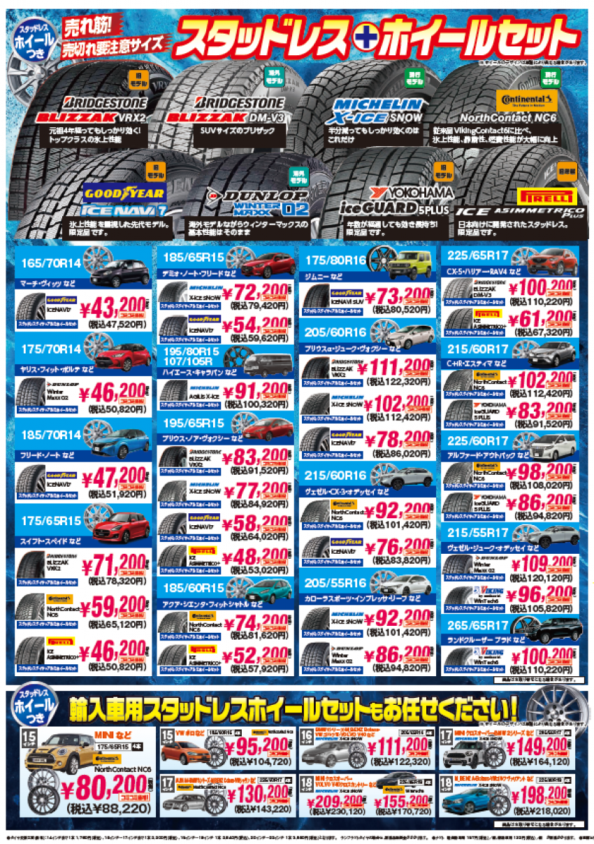 数量限定!!リーフ・新型カローラ・ヴェゼル向けスタッドレス!!