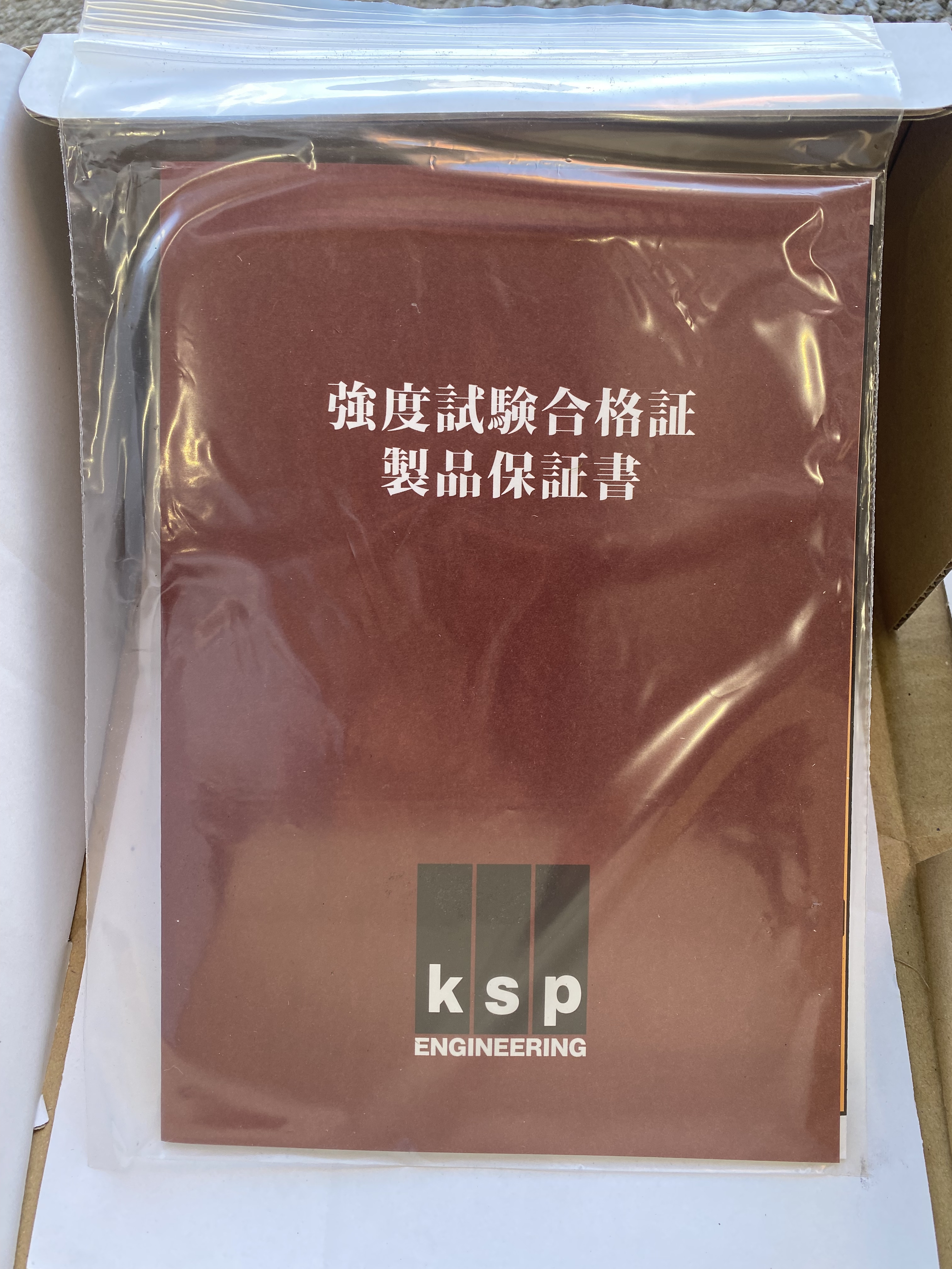 KSP社の安心の証『強度書も』しっかりと同封してあります。