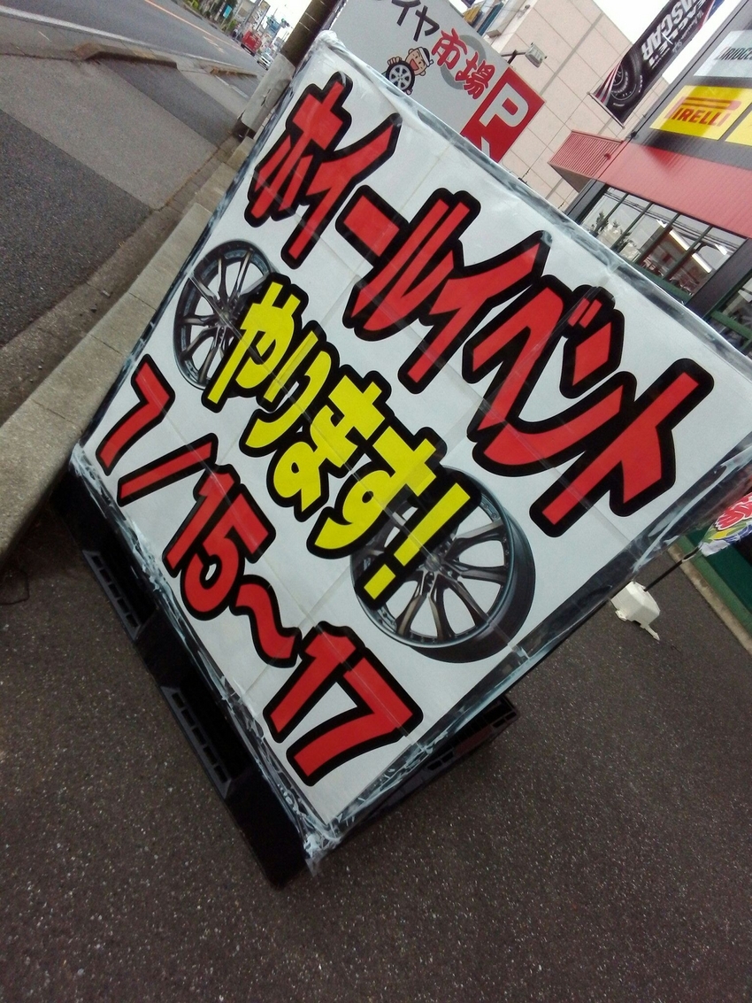 少し前にこちらでも告知させてもらったホイール展示即売会に合わせて外の看板も変えて見ました!!ぜひぜひ遊びに来てくださいね!!