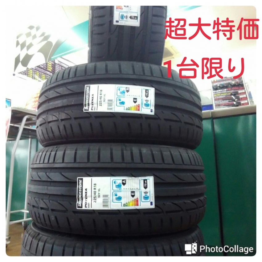ただいまポテンザ S001 225/40R18が大特価で販売中!!