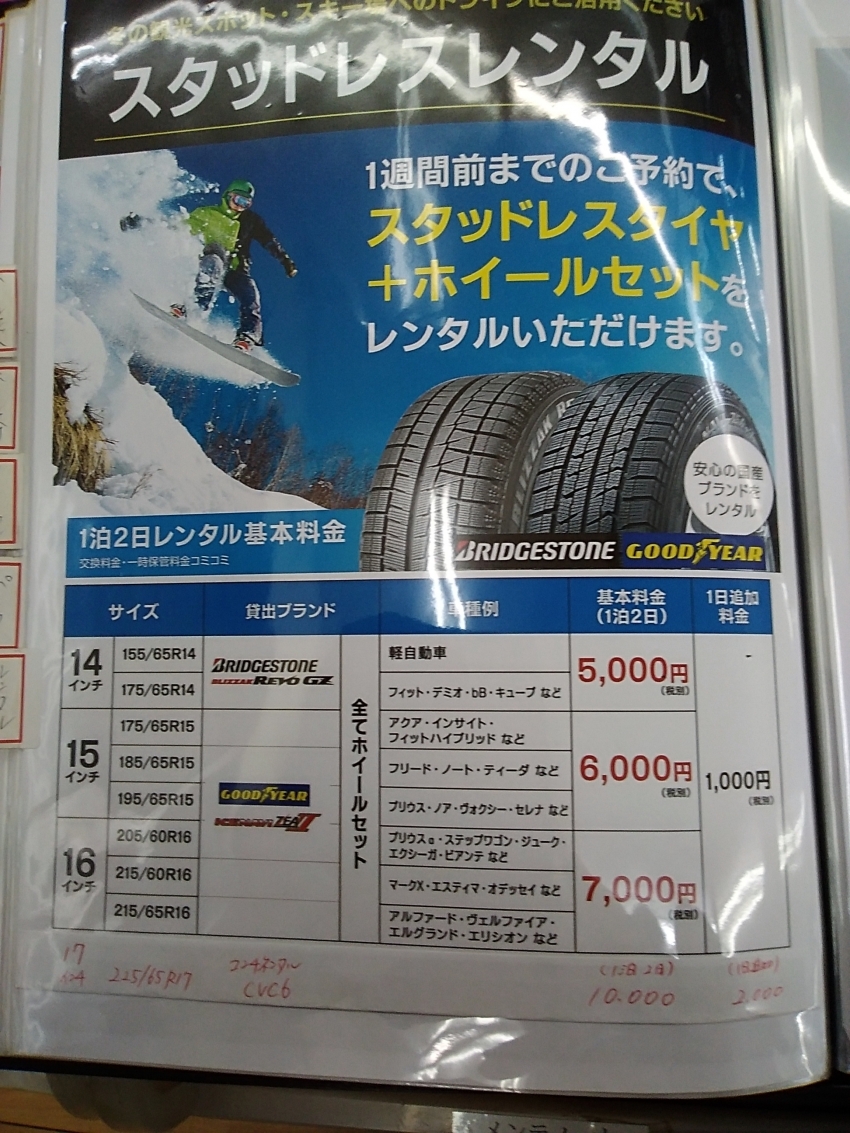スタッドレスタイヤのレンタルがちょうどいい!!と