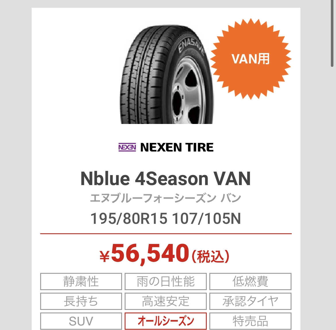 ハイエース キャラバン用オールシーズンタイヤ