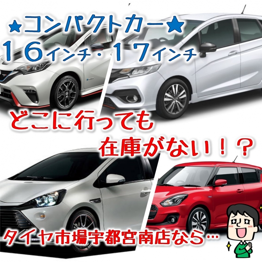 などコンパクトカーの16、17インチのタイヤ!タイヤ市場宇都宮南店なら常時在庫あります!