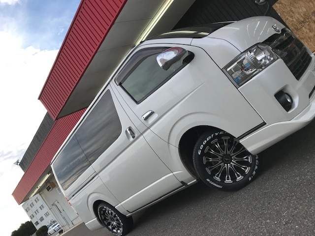 ハイエースのタイヤ交換!グッドイヤー ナスカー215/60R17!ホワイトレター当日作業可能!