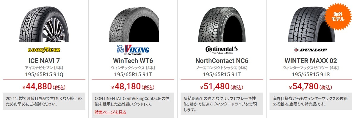 お買い得スタッドレスタイヤ195/65R15サイズ!