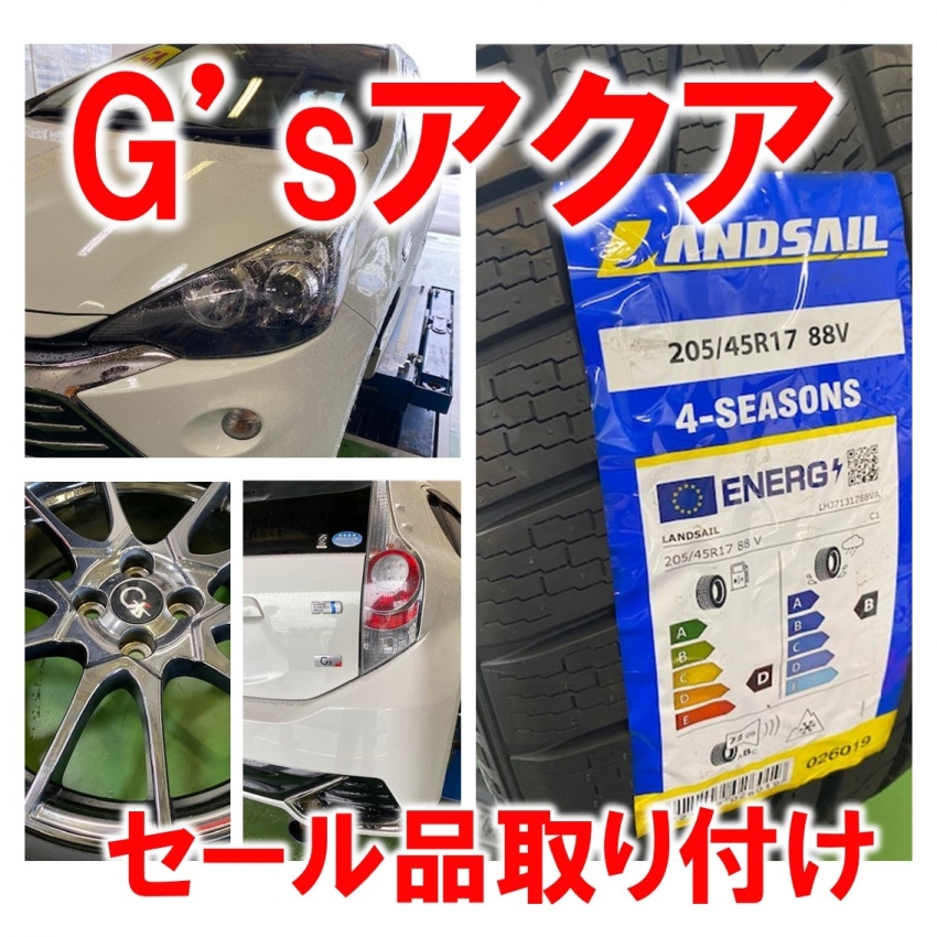 G'sのアクアにアウトレットセール品!オールシーズンタイヤを装着!17インチのオールシーズンもお買い得♪