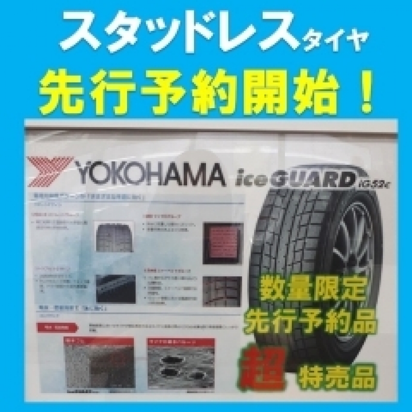 9月より、数量限定超特価スタッドレスタイヤYOKOHAMA IG52先行予約始まりました!