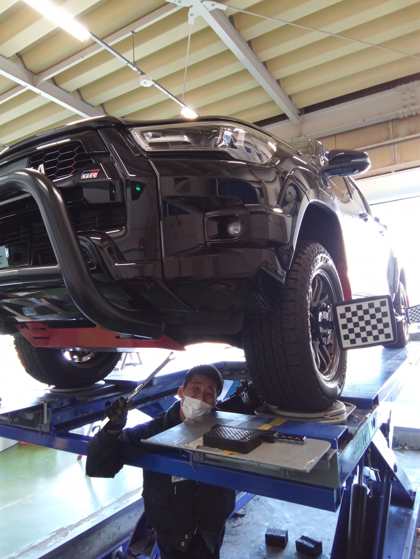 本日は、ハイラックスのアライメント調整を