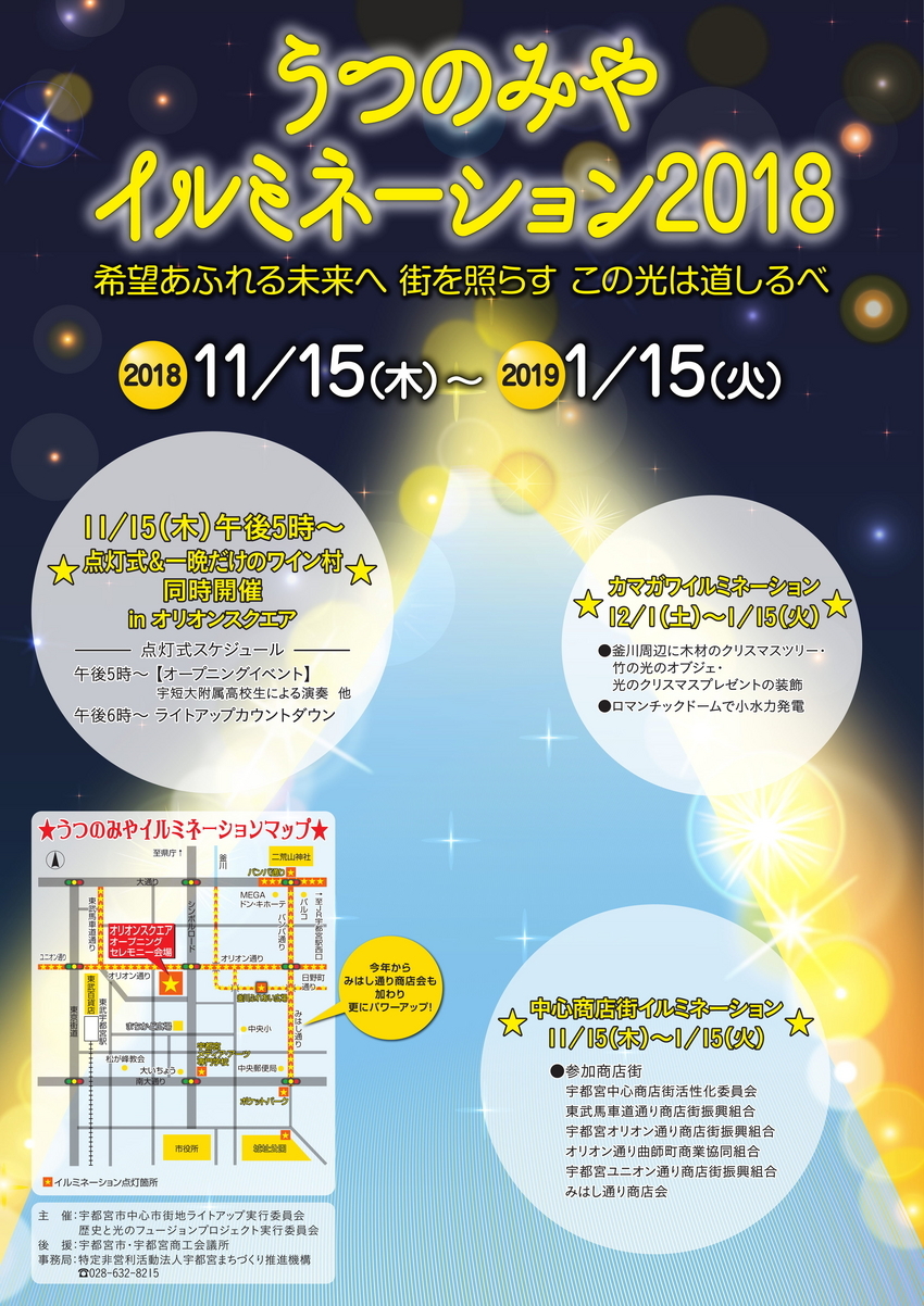 うつのみやイルミネーション2018、終了間近ですよ~!