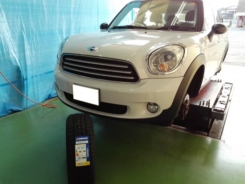 本日は、ミニ クロースオーバーにオールシーズンタイヤを取り付けました!