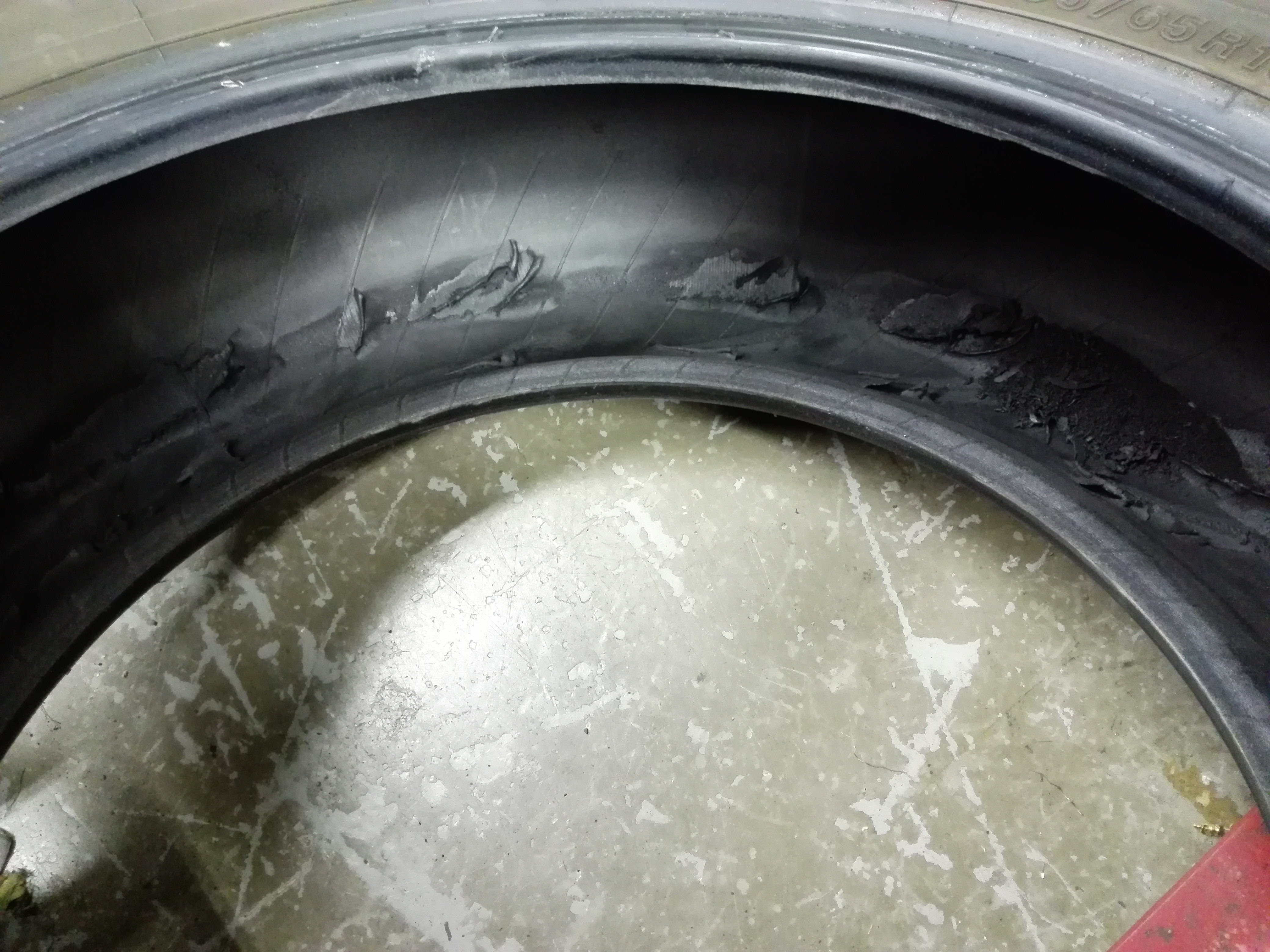 パンクも確認出来ましたが、修理するのは非常に危険です。ホイールから剥がしたタイヤの中を見ていていただくと分かるのですが、ゴム同士が擦れて、ゴムのカスが散らばっています。