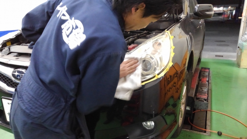 本日はレガシィのヘッドライト磨きを行いました!