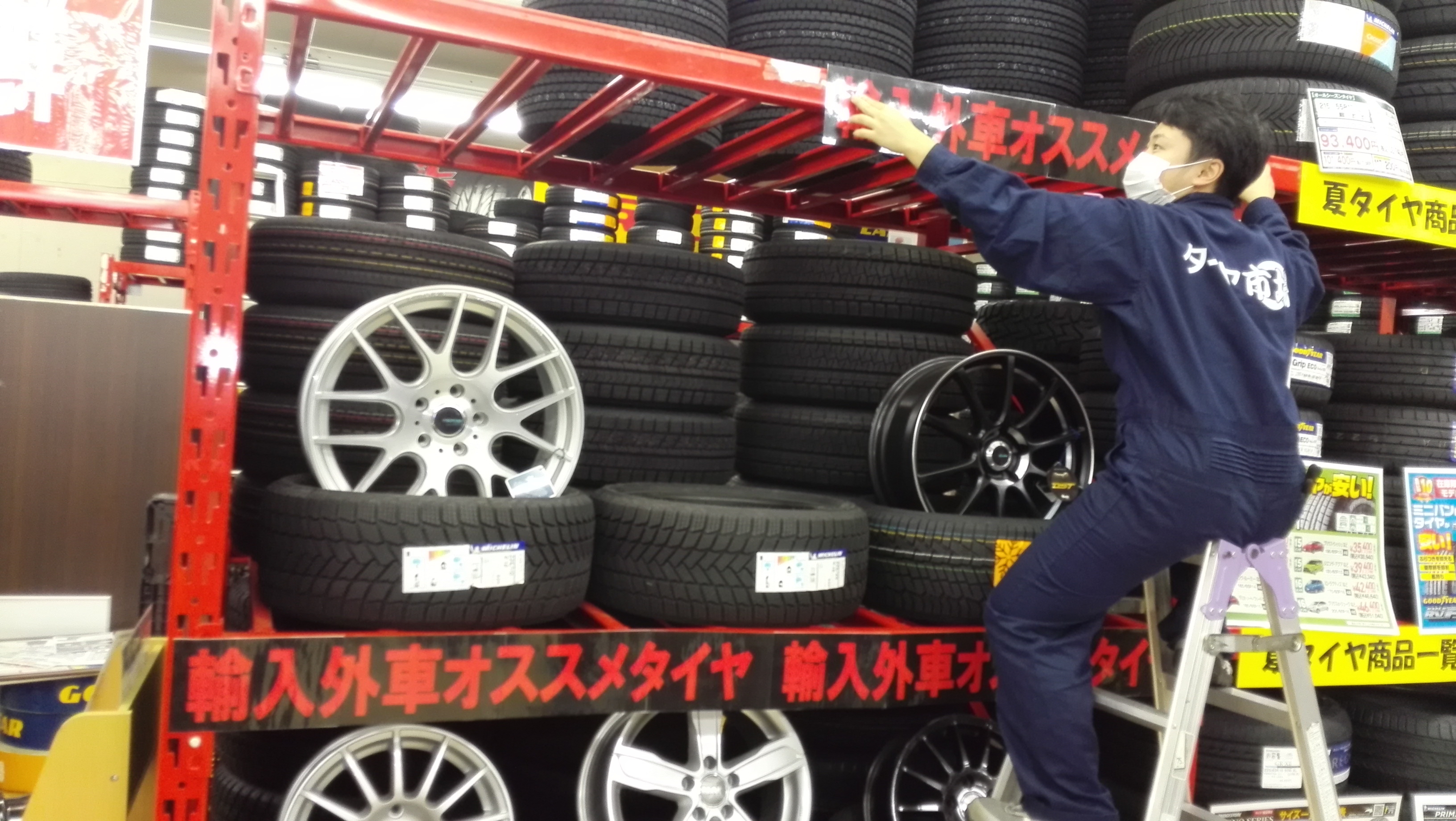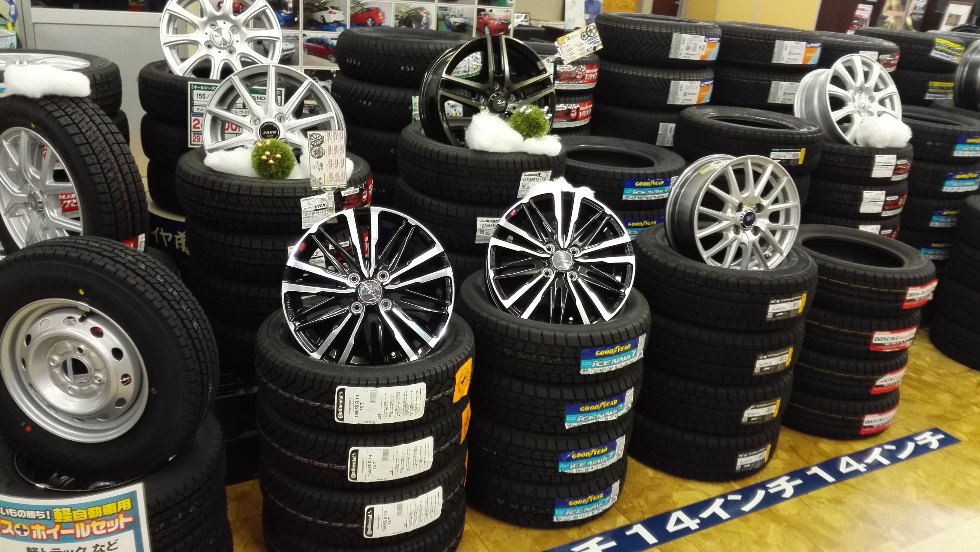 売場をスタッドレスタイヤメインに変えました。