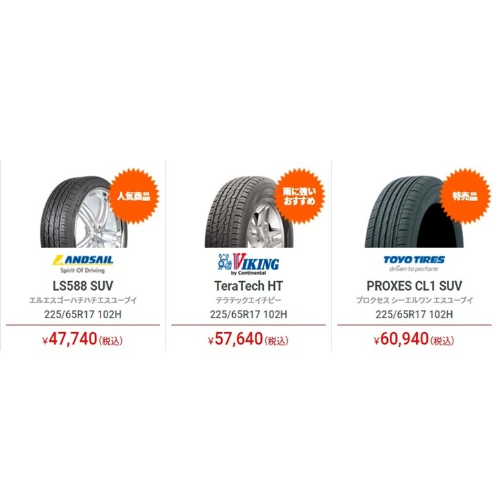 ハリアー夏タイヤ価格.jpg一番左は航空機のタイヤなども作っている中国のタイヤメーカーランドセイル!