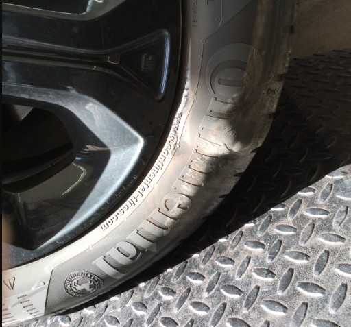 縁石に乗り上げてしまって、大きなこぶ(>_<)ができてしまったタイヤ!!
