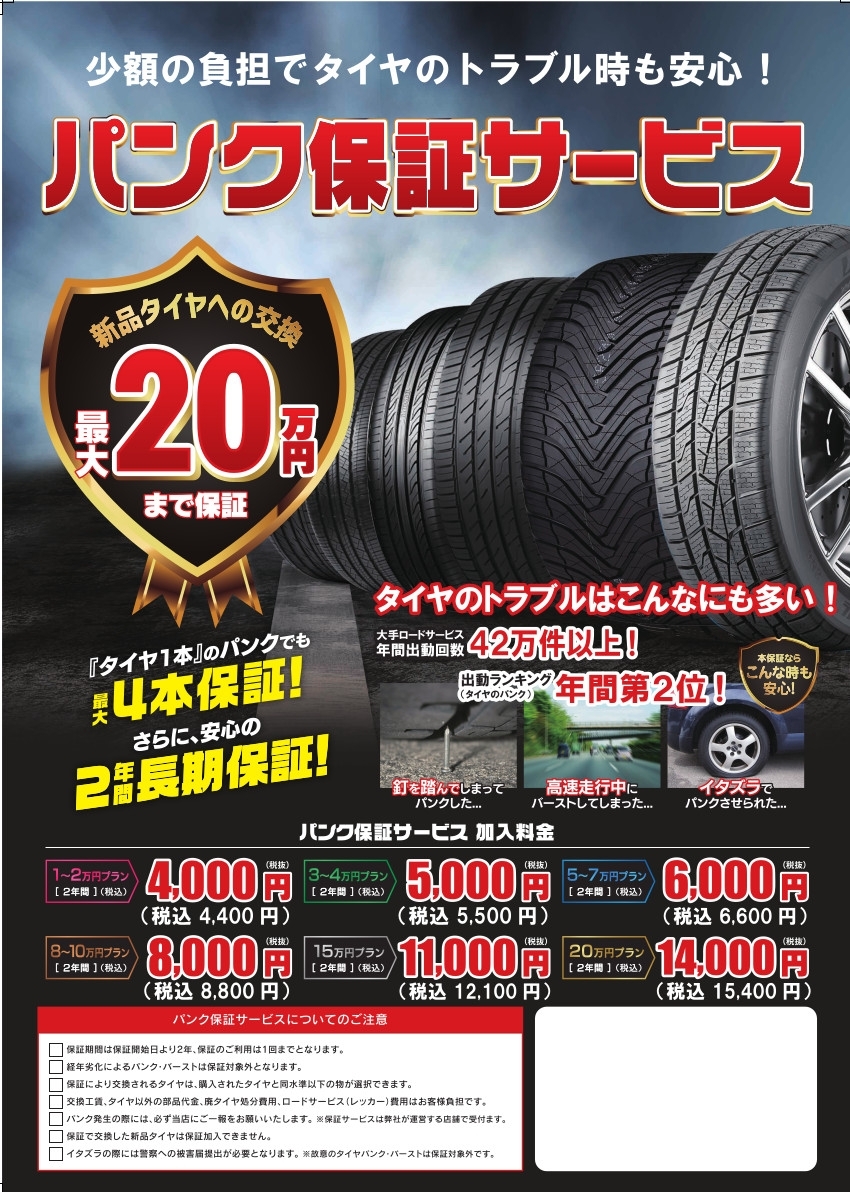 パンク保証おすすめしています!!