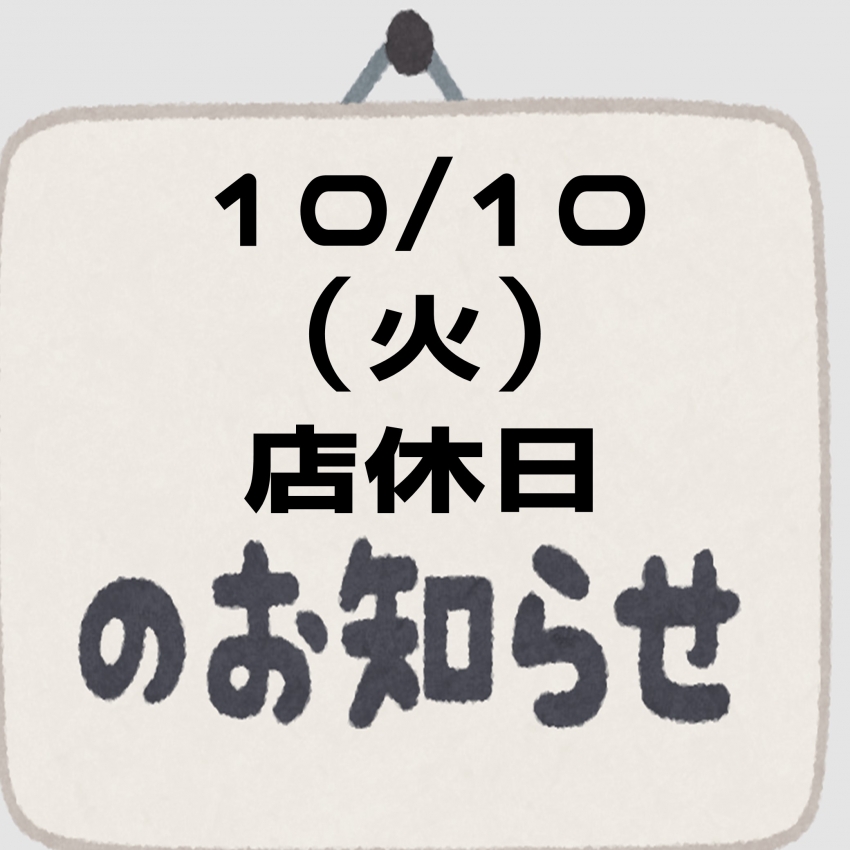明日10/10(火)はお休みとなります