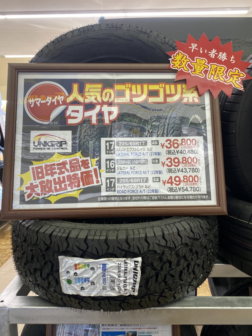 今人気のゴツゴツタイヤを安く入れたいならUNIGRIPがオススメです!