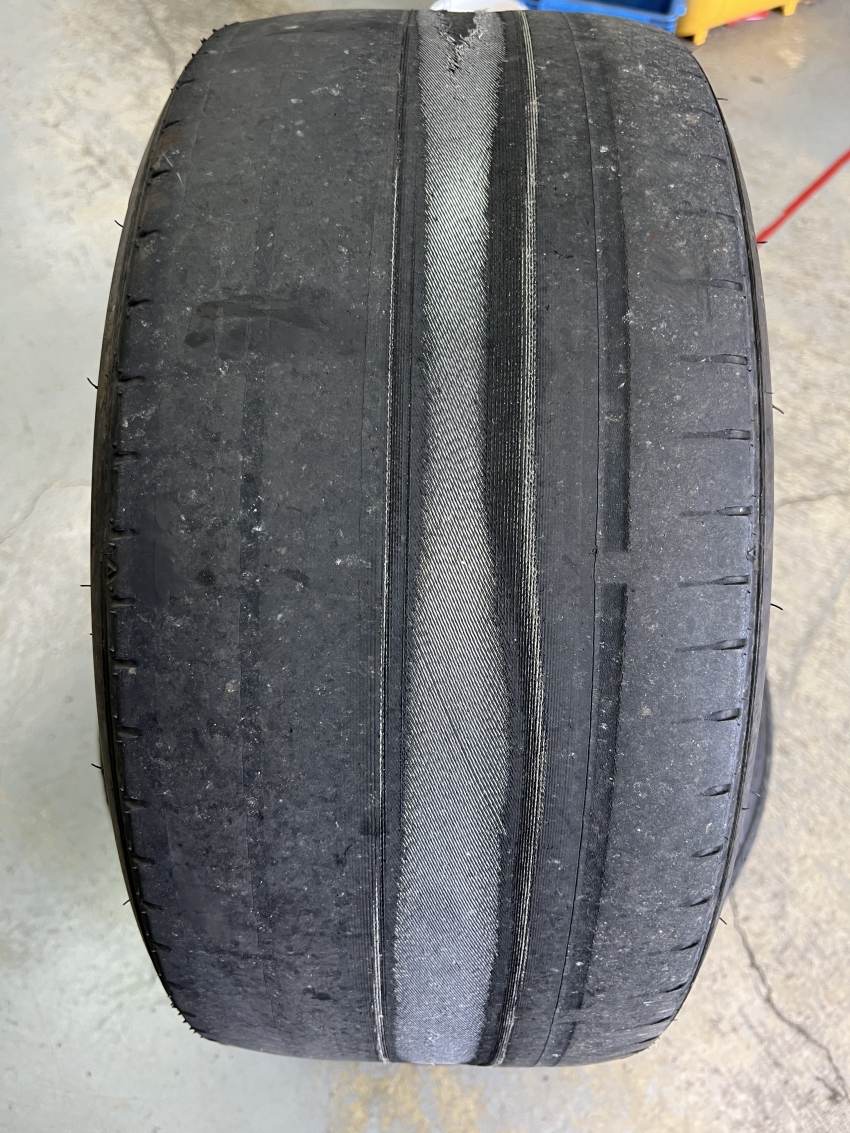IMG_4030.JPGこうなってしまった原因は不明ですが、タイヤの接地面が分離しそうです!?
