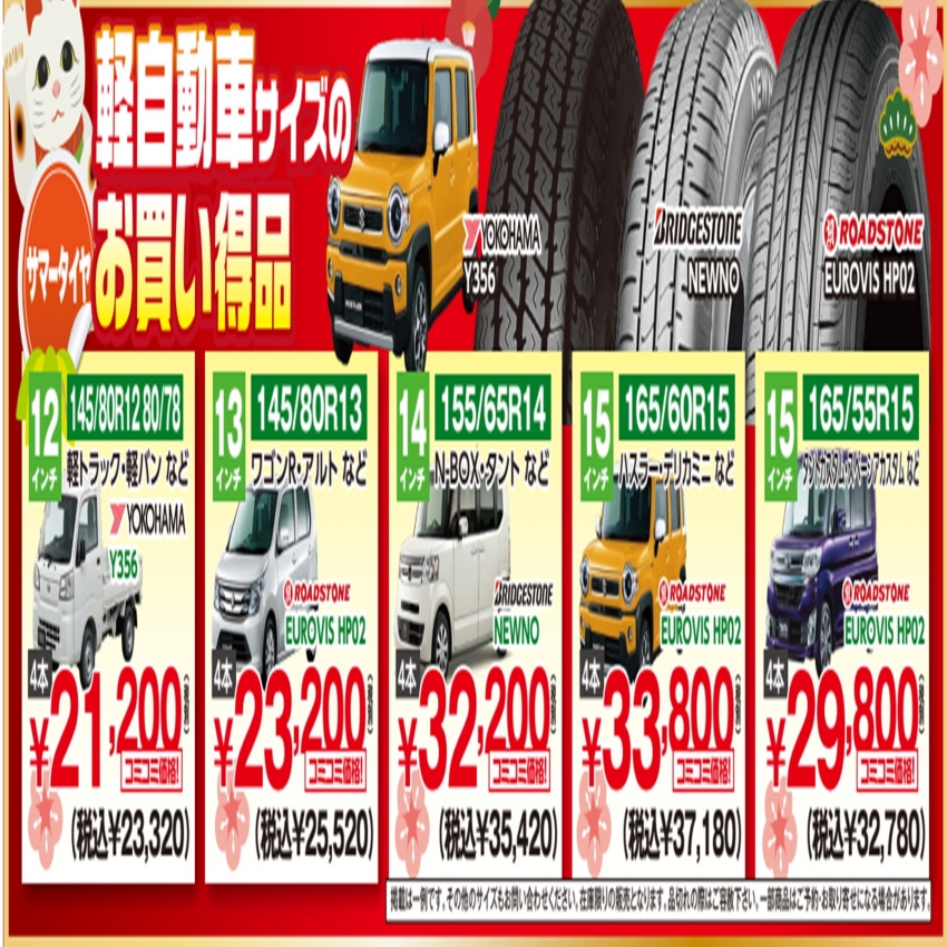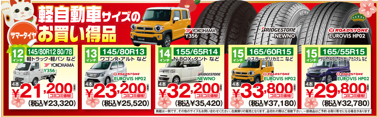 夏タイヤ 特に軽自動車用がお買い得