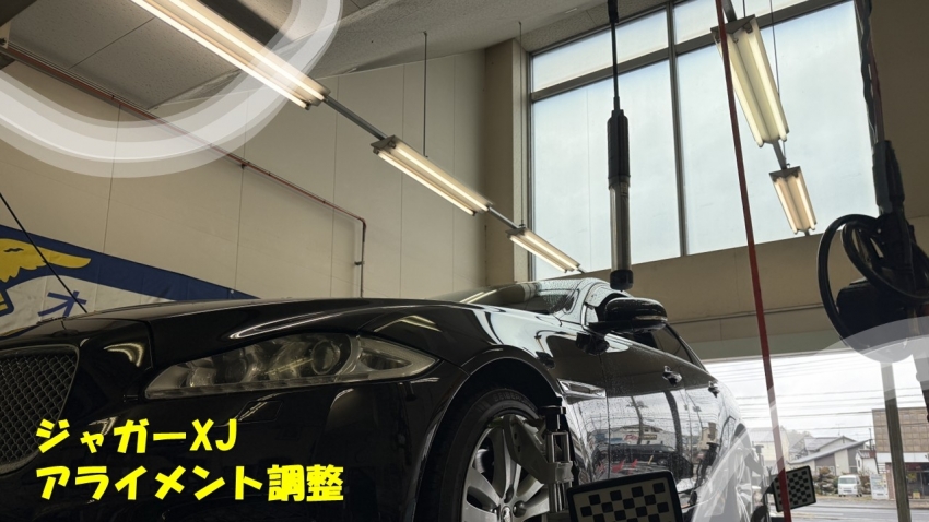 ジャガーXJでアライメント調整ご入庫いたしました!輸入車のアライメント調整ならタイヤ市場宇都宮西川田店へお任せください!